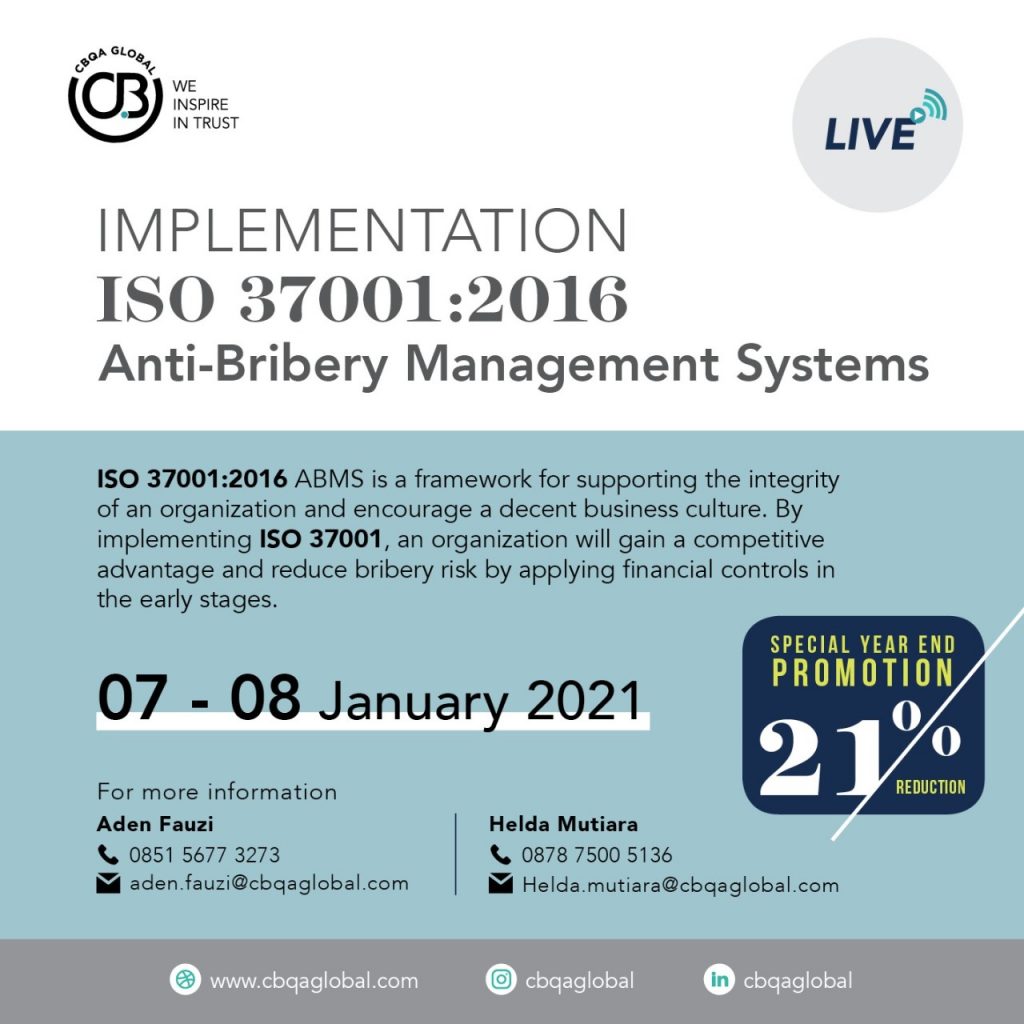 Kursus selama dua hari yang akan membantu Anda untuk Memahami konsep & struktur Standar ISO (ISMS, QMS dan EMS) Memahami manfaat Standar ISO untuk organisasi Anda, bisnis, masyarakat, dan Pemerintah